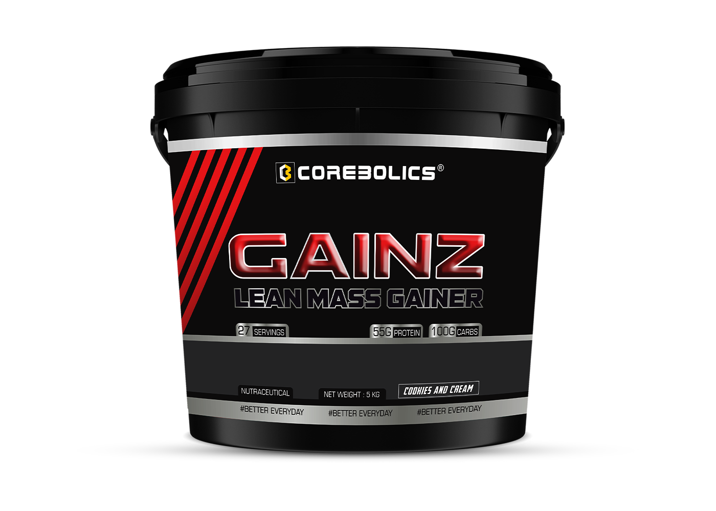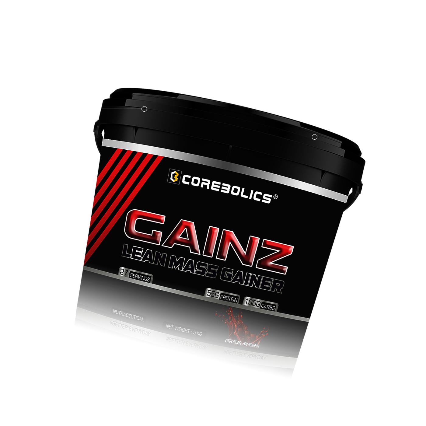 Corebolics Gainz - Lean Mass Gainer (5 kg, 27 Servings) + FREE GYM BAG