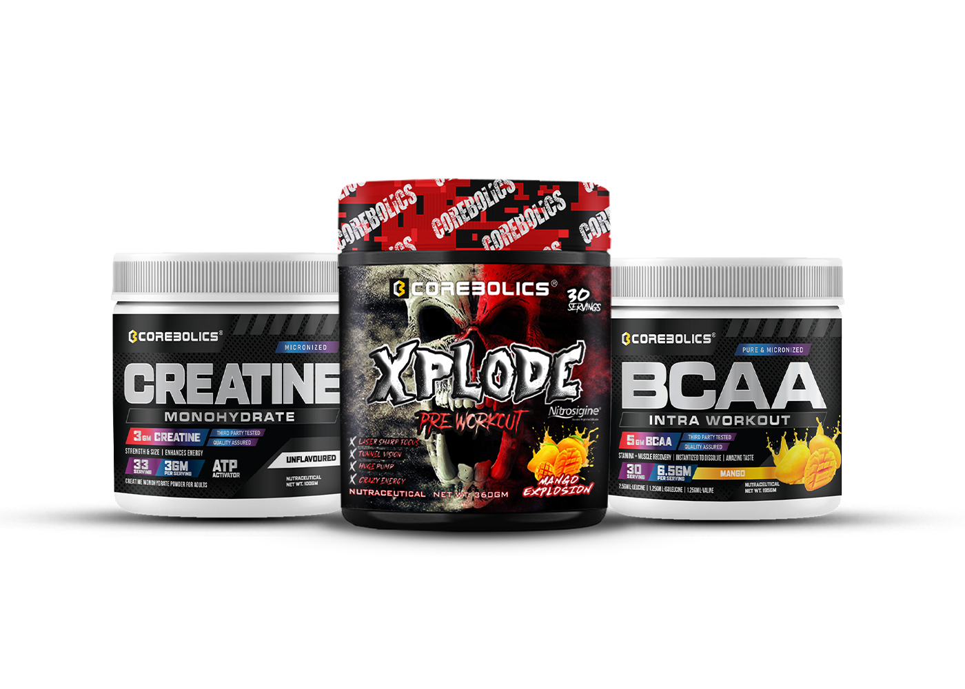 This stack features Xplode Pre-Workout, Micronized Creatine Monohydrate, and BCAA Intra Workout, making it the perfect supplement trio for fitness enthusiasts, bodybuilders, and athletes who demand real results.