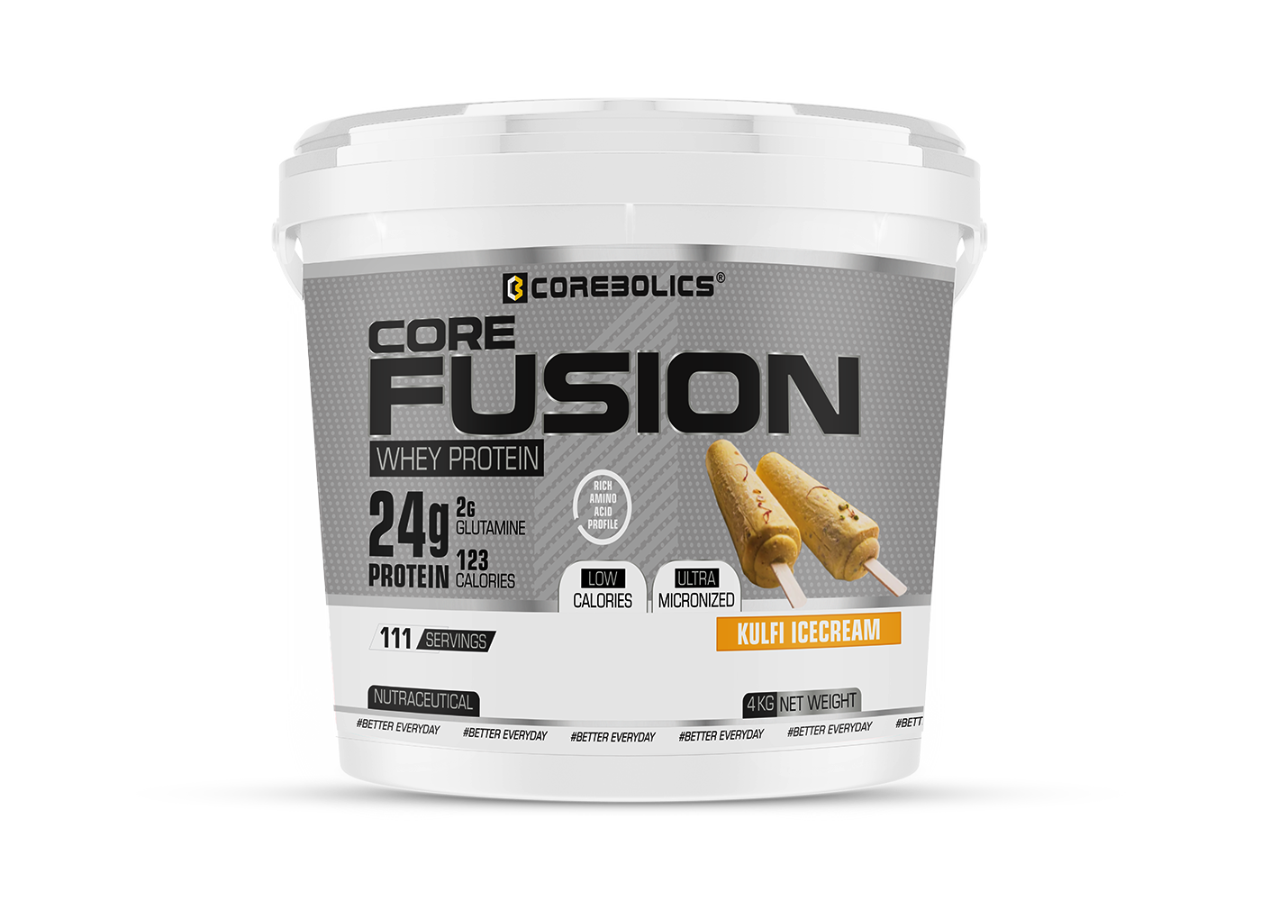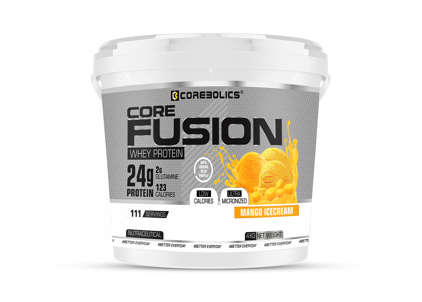 The most crucial tool in your armoury for gaining muscle is whey protein. It improves your post-workout recuperation and encourages muscle growth while preventing muscle breakdown. Additionally, it is simple to digest and a good source of potent BCAAs. Two potent forms of protein are combined in one potent blend in our Core Fusion whey protein. It's ideal in the morning, in between meals, and especially after exercise.
