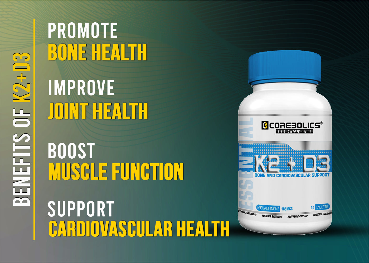 Unlike any other vitamins, Vitamin K has been found to help maintain bone mineral density by reducing the effect of osteoclasts, a cell known to break down the bone matrix. In addition to that, vitamin K also provides significant cardiovascular protection by helping to activate Matrix GLA Protein (MGP), an inhibitor of circulatory calcification. Simply put Vitamin K2 is one of the only vitamins proven to break down plaque buildup within vital organs. Thus, vitamin D3 and K2 not only share similar features, but they also act synergistically to promote a healthy heart and strong bones.